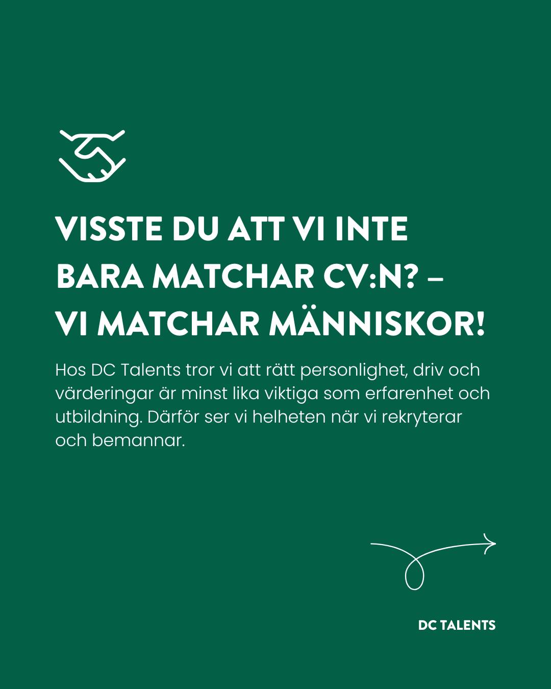 Vi ser mer än bara CV:t! Hos DC Talents matchar vi rätt personlighet, driv och värderingar med rätt roll – för både kandidater & företag!